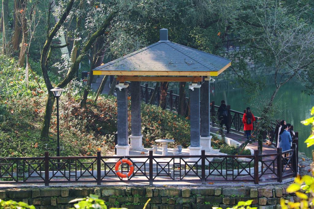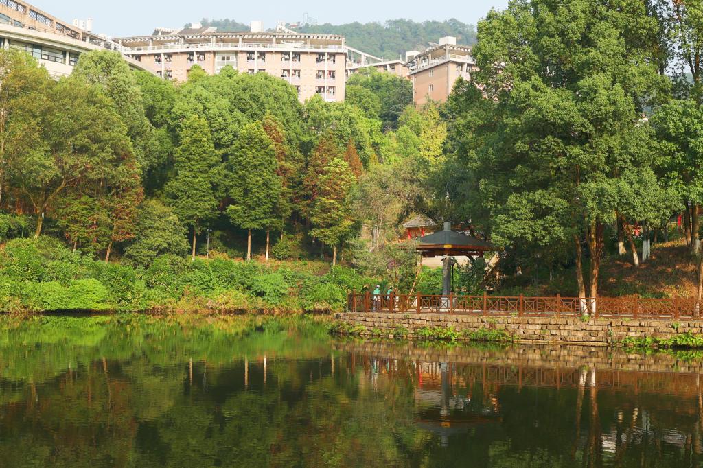 翠湖位于365官网南岸校区,东靠南山、西临图书馆,北临学生公寓及厚德楼。在充分遵循生态性、安全性、文化性、功能性及经济性等原则的基础上,学校倾力打造翠湖湿地花园,营造出绿色、活力、安全的湖滨休闲环境,为师生提供了生态宜人的休闲滨水空间。