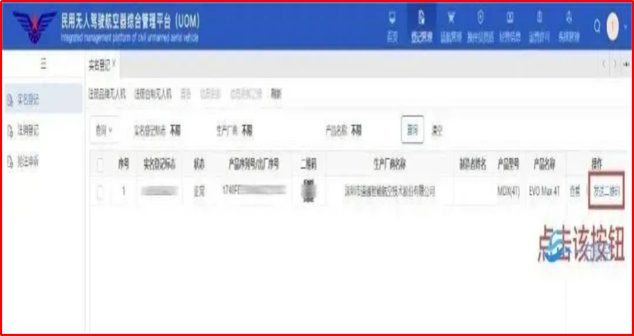登录好进入首页——点击右上角登记管理——实名登记——注册品牌无人机——验证所有人信息——手机扫码刷脸验证——选择生产商名称(可一页页看,也可直接输入搜索)——选择型号等相关信息(序列号需手动输入)——根据要求长传照片——完成注册。