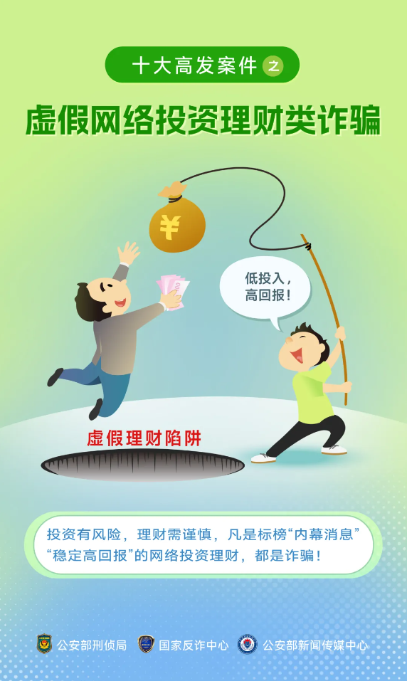 诈骗分子主要通过网络平台、短信等渠道发布推广股票、外汇、期货、虚拟货币等投资理财信息,吸引目标人群加入群聊,通过聊天交流投资经验、拉入内部“投资”群聊、听取“投资专家”“导师”直播课等多种方式获取受害人信任。在此基础上,诈骗分子打着有内幕消息、掌握漏洞、回报丰厚的幌子,诱导受害人在特定虚假网站、APP小额投资获利,随后诱导其不断加大投入。当受害人投入大量资金后,诈骗分子往往编造各种理由拒绝提现,而是让其继续追加投资直至充值钱款全部被骗。还有部分诈骗分子通过网恋方式骗取受害人信任,再通过诱导虚假投资理财等进行诈骗。此类诈骗的受骗人群多为具有一定收入、资产的单身人士或热衷于投资、炒股的群体。