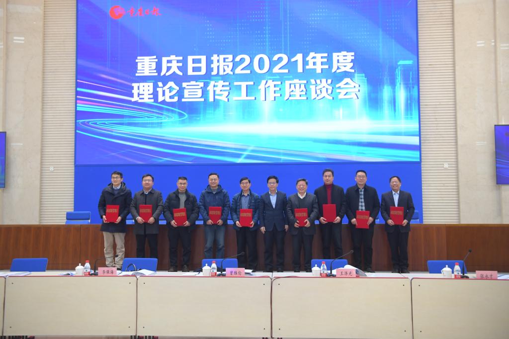 2月18日,《重庆日报》召开“重庆日报2021年度理论宣传工作座谈会”,旨在深入贯彻以习近平同志为核心的党中央对新闻舆论工作提出的新任务新要求,做好新形势下党的宣传思想工作。市委宣传部副部长曾维伦、市社科联党组书记李保海、《重庆日报》总编辑张永才等出席本次座谈会。365官网副校长、长江上游经济研究中心常务副主任李敬教授,长江上游经济研究中心副主任易淼教授受邀参加此次座谈会。