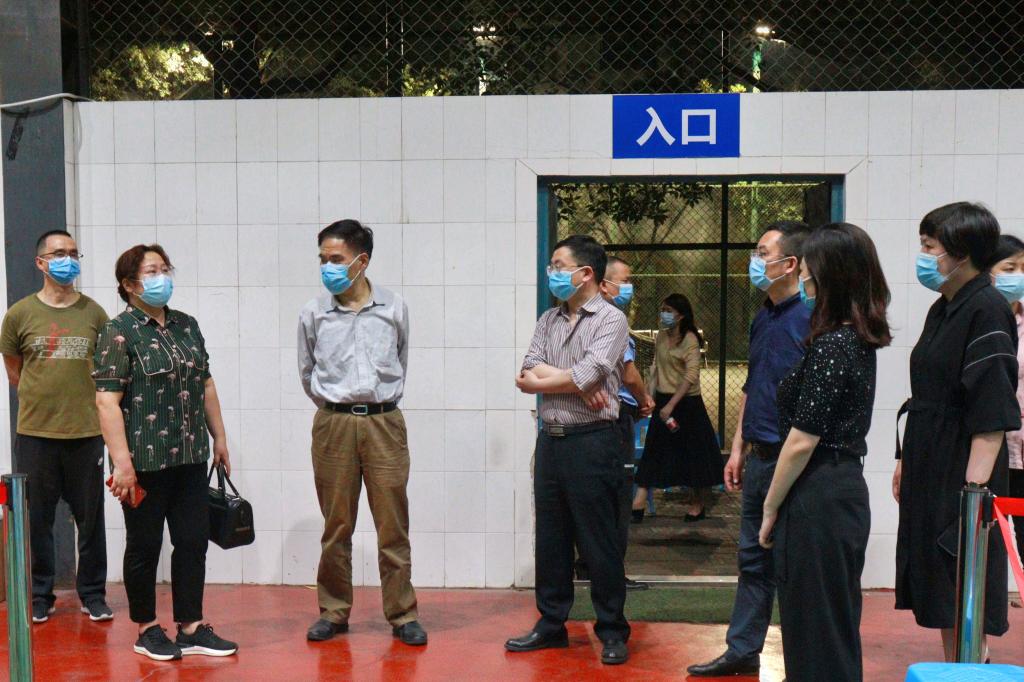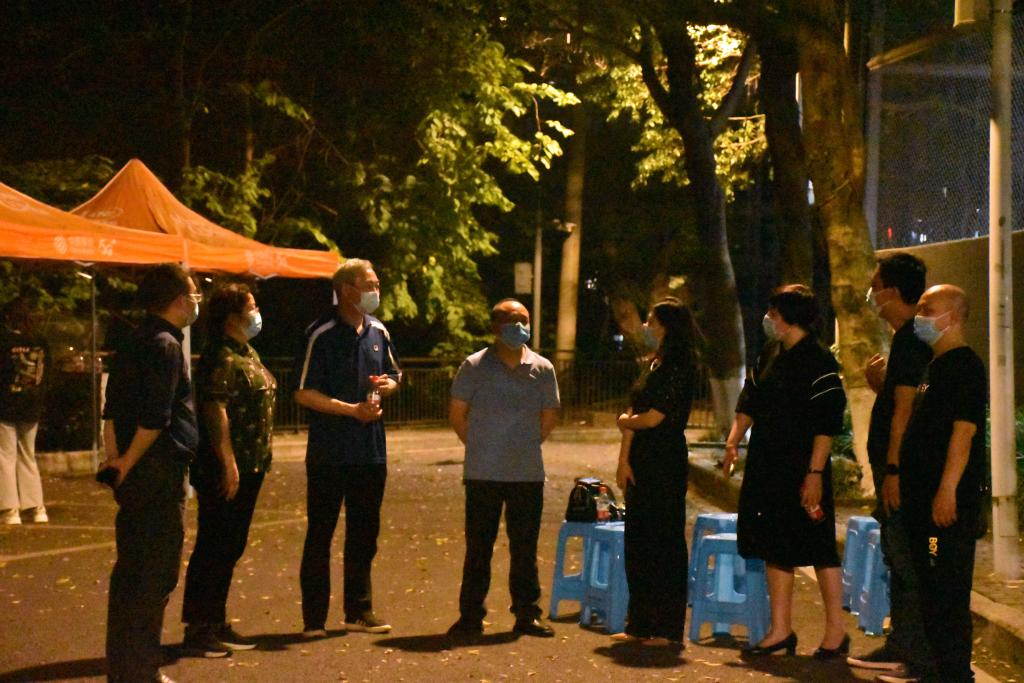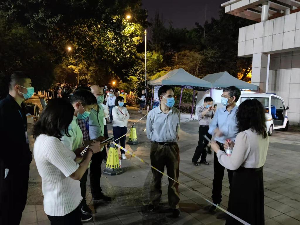19时,校园华灯初上,全员核酸检测工作稳步开展。学校党委书记李志雄,党委副书记、校长孙芳城,党委常委、纪委书记、监察专员周航,副校长陈兴述、李国军在学校疫情防控领导小组办公室、兰花湖片区协调委员会、江北校区管委会及相关部门、学院负责人陪同下,深入南岸校区操场、兰花湖片区和江北校区核酸检测现场检查指导工作。校领导实地查看并详细了解采样点区域划分、检测工作流程、后勤服务保障、现场秩序维护、防控措施落实等情况,对参与核酸检测医务人员、学生志愿者等工作人员的辛苦付出表示诚挚感谢和敬意。校领导强调,开展全员核酸检测是当前疫情防控工作的重要任务,学校高度重视,相关部门和学院要充分认识在当前形势下开展此项工作的重要性和必要性,坚持思想不松懈、行动有实效,认真把控每个环节,确保严格按照相关要求,高效、高质量完成核酸检测等疫情防控工作。