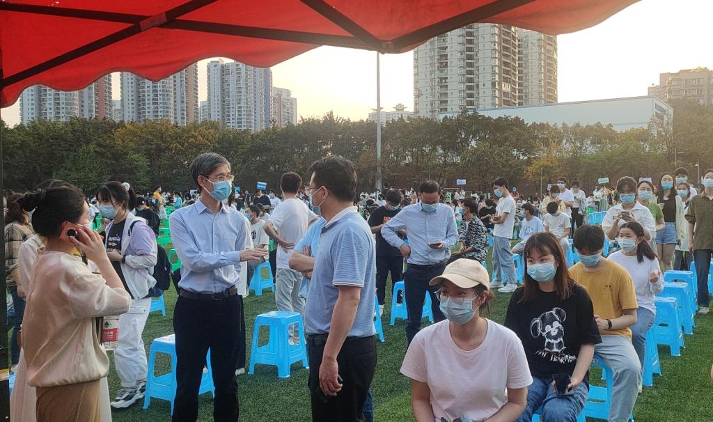 虽然重庆温度已经达到32度,在炎热的天气下,相关部门、各学院都各司其职、精心组织,志愿者和医务人员不辞辛劳,始终坚守在防疫第一线,师生员工分批错峰到达采样现场,等候登记、样本采集,有序离场,各项工作有条不紊开展。