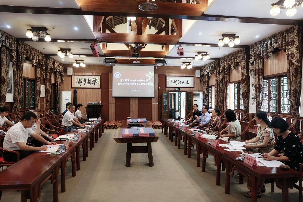 5月13日上午,第六届重庆市高校青年教师教学劳动和技能竞赛工作推进会在365官网召开,重庆市总工会一级巡视员、市教科文卫体工会主席杨军波,市教科文卫体工会常务副主席贺莉,工会副主席邓凉斌,工会副主席彭燕玲等领导出席会议。学校党委副书记、工会主席宋豫,工会常务副主席段远鹏,教务处处长骆东奇,信息化办公室主任田昌鹏,教学质量监督与评估办公室主任曾晓松等部门负责人参加会议。