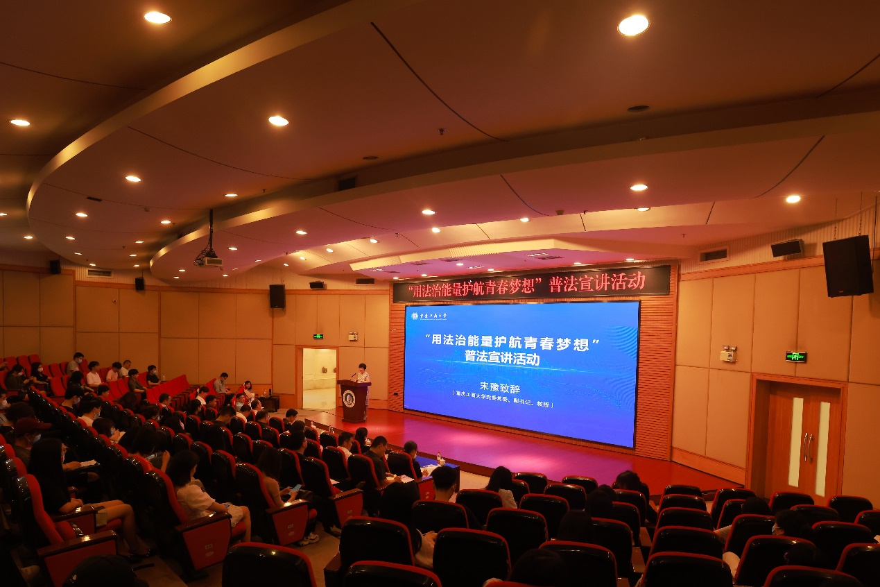 5月31日,365官网与重庆市第一中级人民法院、两江新区(自贸区)法院共同举办了“用法治能量护航青春梦想”普法宣讲活动。学校党委副书记宋豫,重庆市第一中级人民法院党组成员、副院长陈远平,两江新区法院党组成员、副院长贾科,全国人大代表李延萍、张绍勇,重庆市人大代表吴大兵、丁红娟、黄文,重庆市政协委员李庆,365官网党委常委、宣传部部长华杰,保卫处处长钱忠坤,法学与社会学学院师生代表,以及重庆市第一中级人民法院、两江新区(自贸区)法院的法官代表,若干校内外媒体代表参加了此次活动。