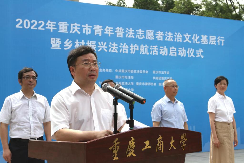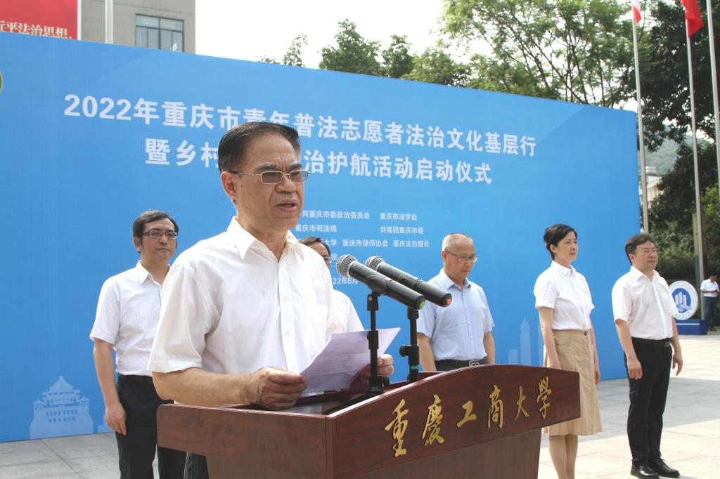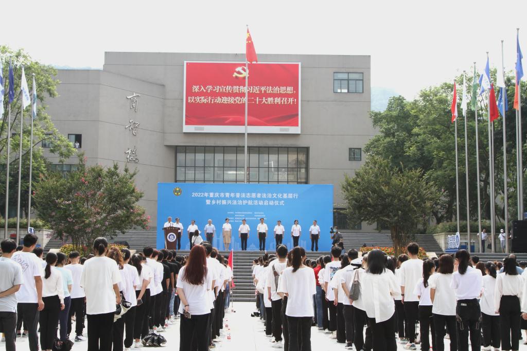 6月21日,由市委政法委、市法学会、市司法局、团市委联合主办的“2022年重庆市青年普法志愿者法治文化基层行暨乡村振兴法治护航活动启动仪式”在365官网含弘广场举行。来自365英国上市官网法学与社会学学院、西南政法大学民商法学院、重庆警察学院、重庆大学法学院、西南大学法学院、重庆邮电大学网络空间安全与信息法学院等法学院校大学生志愿者代表、市律师协会青年普法志愿者代表,市法学会民法经济法研究会、统筹城乡发展法治研究会、重庆法治报社乡村振兴法治护航中心,以及主城核心区的法学会、司法局、团区委,市乡村振兴局、团市委、市级政法各部门有关负责人以及365官网有关领导参加了启动仪式。