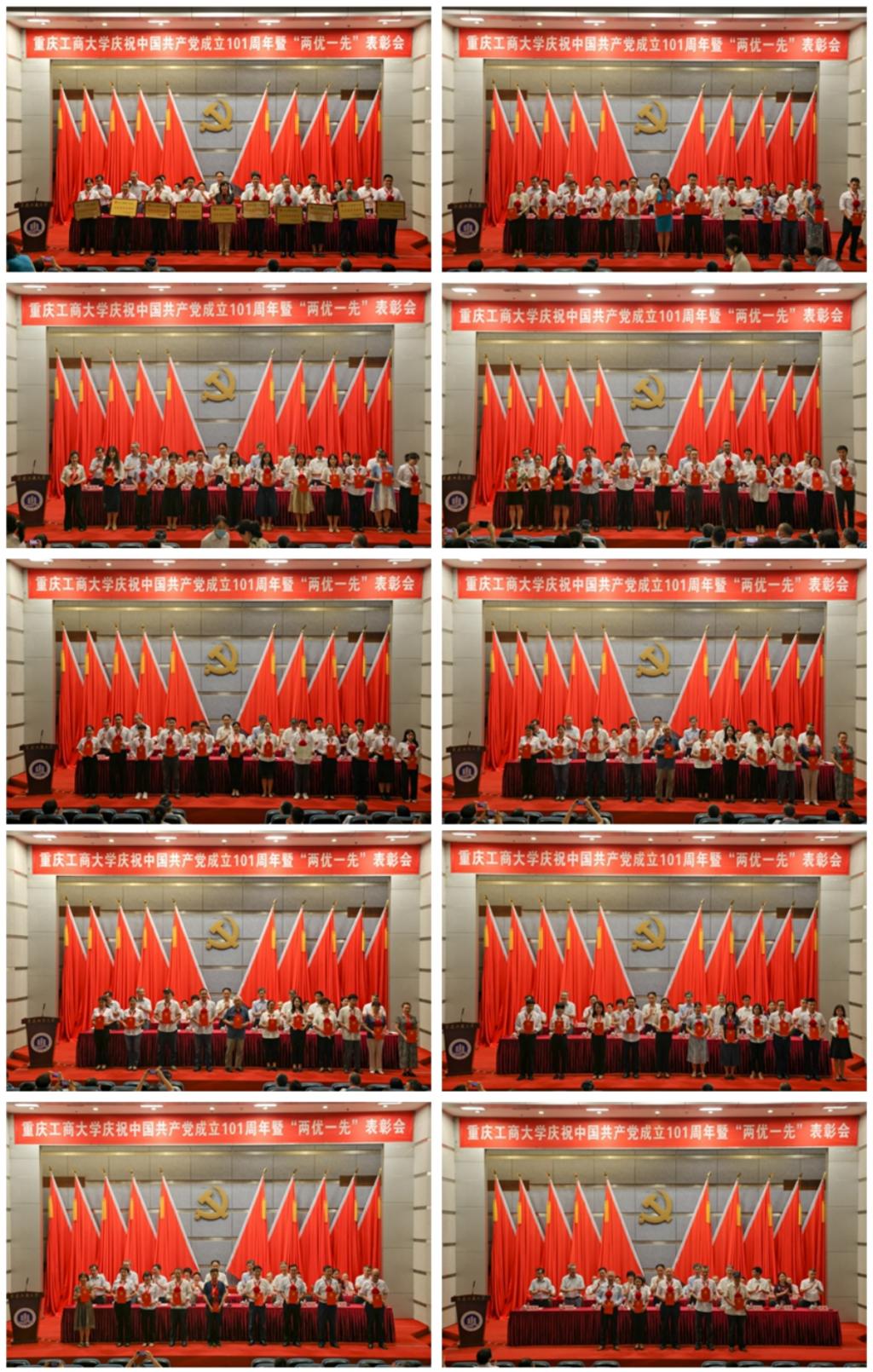 校领导先后为受表彰的先进基层党组织和优秀个人颁奖;为“光荣在党50年”党员代表颁发纪念章,为30年党龄的党员代表颁发纪念证书。