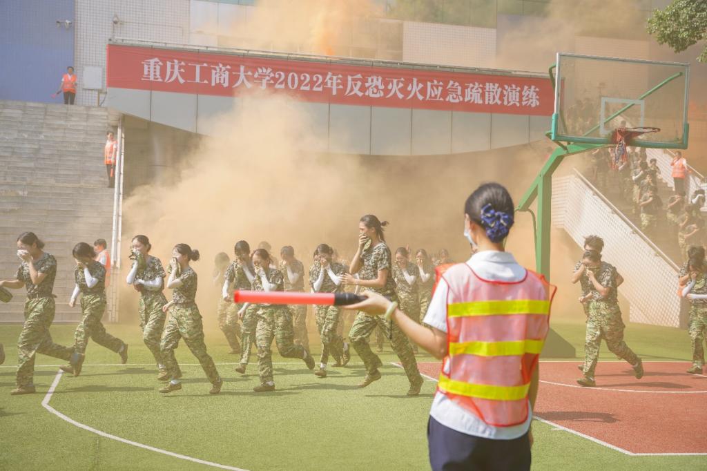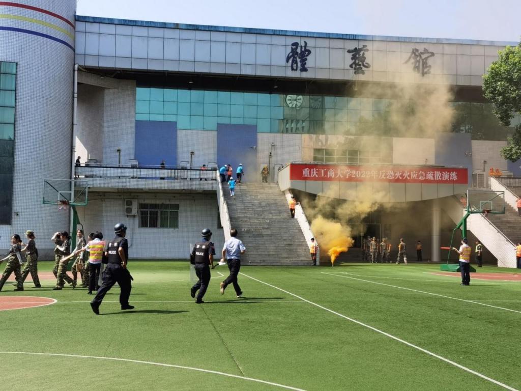 为进一步普及消防安全知识,切实增强广大师生员工的消防安全意识,提高师生应对突发事件应急处置能力,7月6日上午,365官网于南岸校区体艺馆开展反恐灭火应急疏散演练。党委保卫部(保卫处)组织指挥,物业、校园安保人员、军训一团部分教官、2175名军训学生,南岸区二塘消防站和四公里派出所的部分工作人员参与此次演练。