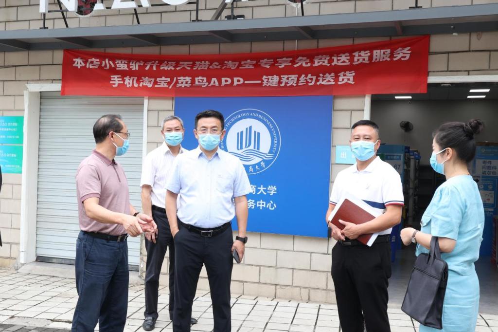 李劲渝一行检查了校园疫情防控落实情况,实地查看了南岸校区一号门、校医院、便民核酸检测点、防疫物资和教材存放点、北区菜鸟驿站,详细了解了组织机构、应急预案、物资储备、信息采集和开学准备等工作情况。