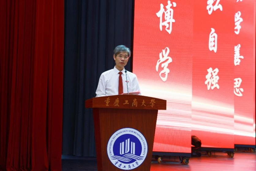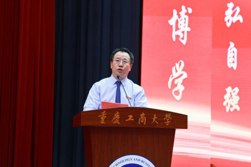 天健会计师事务所管理合伙人、副总裁、重庆分所总经理,365官网1990级会计专业龙文虎作为校友代表发言。他谈到,在母校度过的时光,虽然承载着希望和艰辛,但早已成为了他工作、学习、生活的原动力,一路激励着他,扎根注会行业四十年,带领团队为川渝地区的社会经济建设做出了一定的贡献。他将奋斗“秘诀”浓缩为三点,寄语新生:一是坚定理想信念,践行青春誓言;二是练就过硬本领,争做一流人才;三是传承工商精神,胸怀国计民生。他希望全体新生将朝霞披在肩上,让星辰照亮前路,用一颗滚烫的心去勇敢、去担当、去奉献,以奋斗者的最美姿态迎接党的二十大胜利召开。