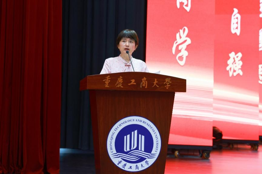 教育部高等学校物流管理与工程教指委委员、重庆市高等学校交通与物流教指委主任、365官网管理科学与工程学院的龚英教授代表教师发言。她首先代表全校2500余名教职工对全体新生的到来表示热烈欢迎。她用“有朋自远方来,不亦乐乎”“黄河之水天上来,奔流到海不复回”“宝剑锋从磨砺出,梅花香自苦寒来”“更无柳絮因风起,惟有葵花向日倾”四句话向全体新生送上最美好的祝福。她希望学子们始终做一朵永远向阳怒放的葵花,追逐光明、百折不挠、不卑不亢、傲然挺立。