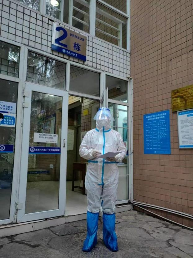 简单吃过的午餐后,辅导员们便化身成为“检察员”,套上防护服一刻不停地前往学生公寓“扫楼”。一边提醒大家做核酸一边核对每个寝室在校生数据,以确保每一位同学核酸检测应检尽检,不因漏一人而耽误全校防疫结果。
