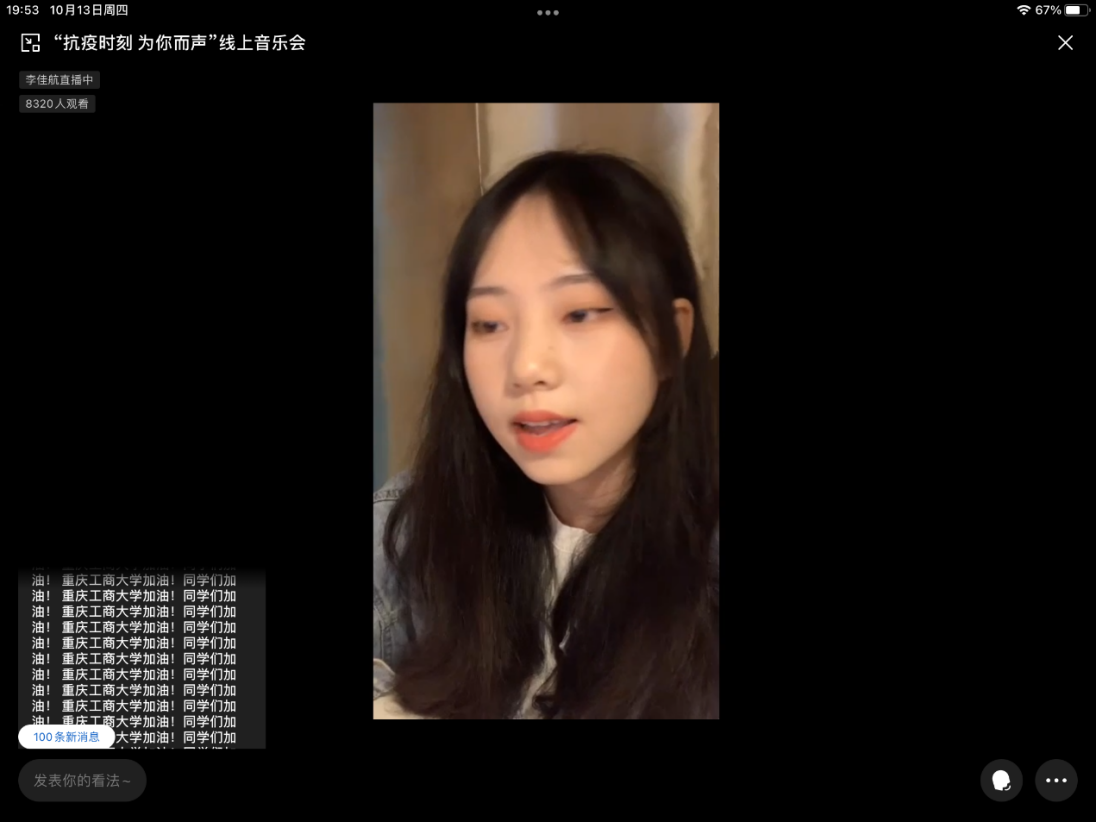 10月13日晚19:30,校团委通过企业微信用线上直播的方式举办“战疫时刻,为你而声”线上音乐会。音乐会通过线上演唱与游戏环节相结合的形式,10余名同学用音乐表达对终将战胜疫情的信心,用歌声把温暖和力量传递给全校师生。这是一场特殊的演唱会,同学们在线上隔空聚首,互相鼓励打气,评论区“365英国上市官网加油!同学们加油!”的弹幕文字刷满屏幕,凝聚着大家抗击疫情的坚强信念。本次线上音乐会受到全校师生热烈关注,直播预约人数近9000人,线上观看1.8万余人次,互动留言5.7万余条。