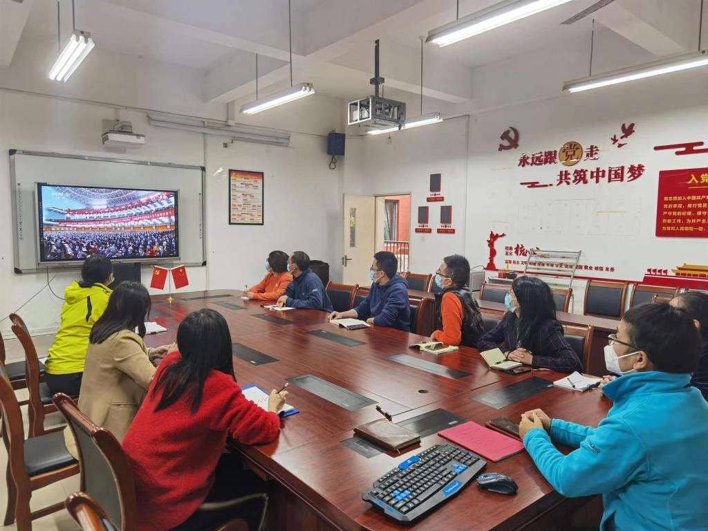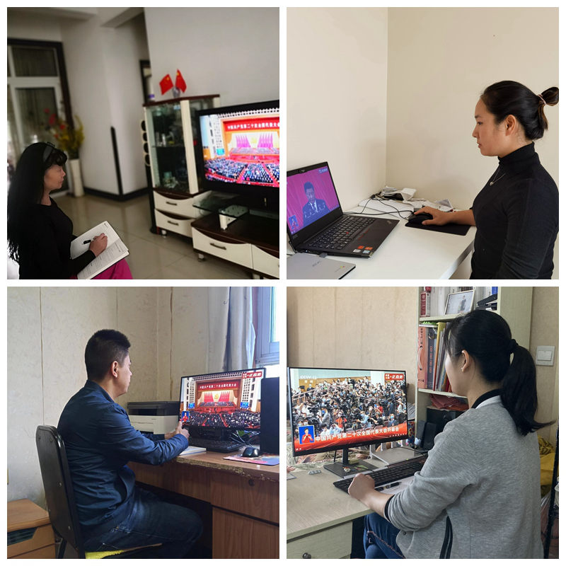 虽然受到疫情影响,但广大师生热情不减,纷纷在办公室、在寝室、在家中积极收听收看开幕会盛况。学校北区24栋临时党支部组织换岗休息志愿者集中收看了大会开幕会。