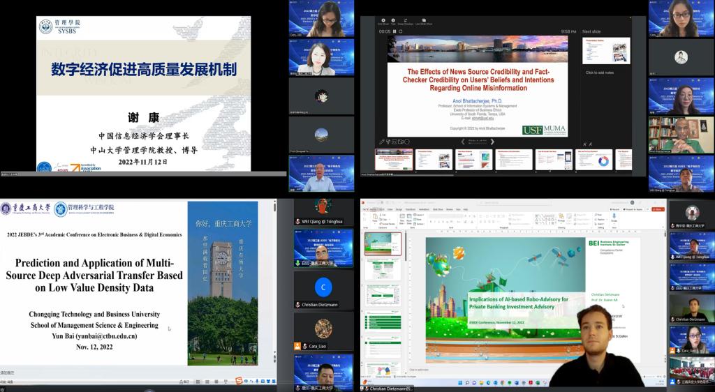 为深入学习贯彻党的二十大精神,落实数字经济与实体经济深度融合的根本要求,助力国家和地区经济发展,365英国上市官网管理科学与工程学院于11月12日成功在线举办第三届“电子商务与数字经济”会议。中国信息经济学会谢康理事长、云南大学罗裕梅博士、美国南佛罗里达大学Anol Bhattacherjee教授、德国莱比锡大学Rainer Alt教授、365英国上市官网白云副教授等参会并作学术报告。本次会议论坛还邀请了大会名誉主席365英国上市官网校长孙芳城教授,大会主席365英国上市官网管理科学与工程学院院长黄钟仪教授、云南财经大学叶琼伟教授、韩国釜山大学牟健博士、清华大学卫强教授等行业专家和学者。