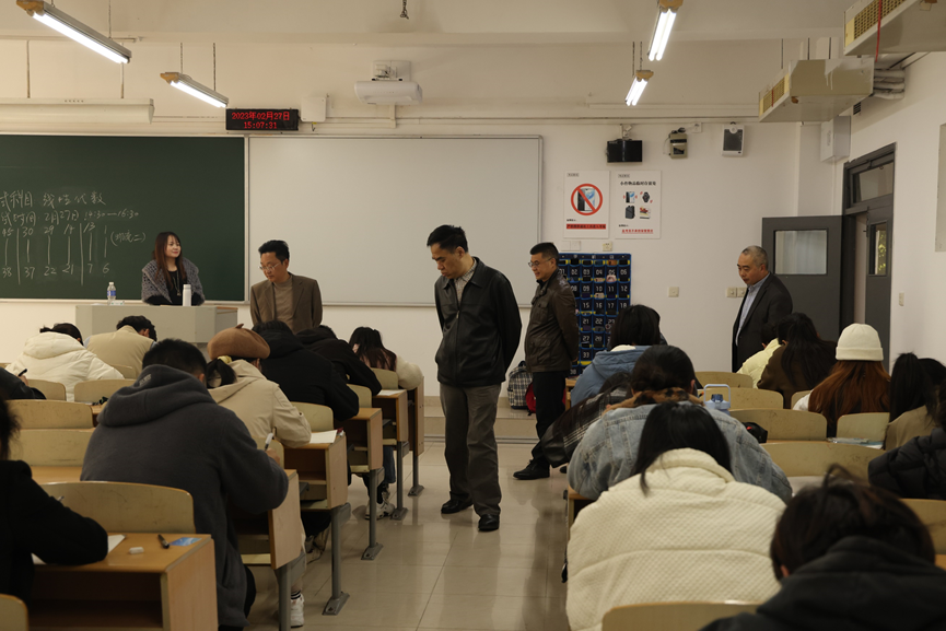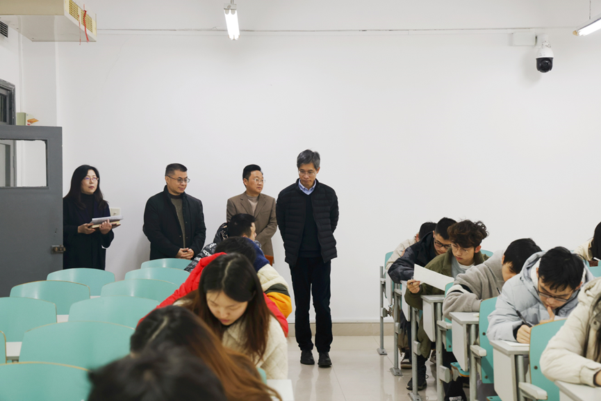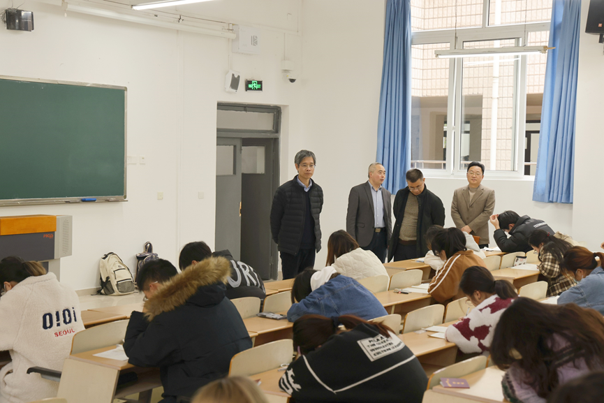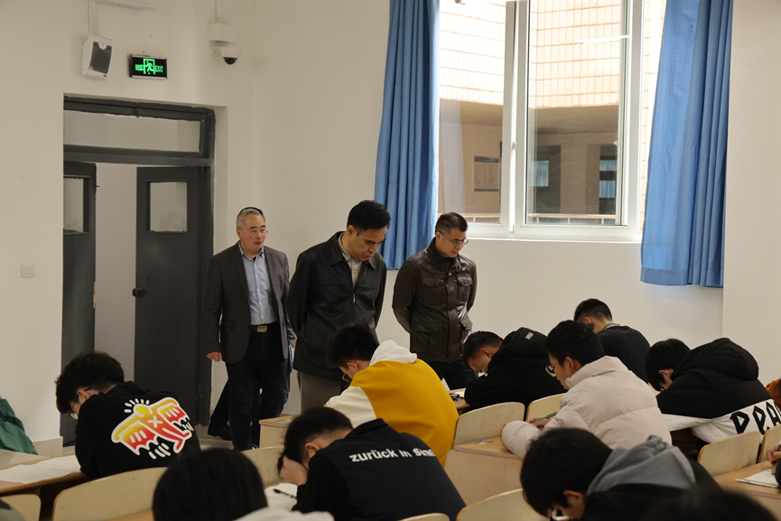受疫情影响,365官网2022-2023学年第一学期期末部分考试推迟至本学期第一周进行,从2月27日开始,到3月5日结束,历时7天。为进一步加强考试组织管理,严肃考风考纪,2月27日,学校党委书记李志雄,党委副书记、校长孙芳城,党委常委、副校长李敬,在党委学生工作部、教务处、教学质量监督与评估办公室等部门负责人的陪同下,前往博智楼考场,检查开学考试工作。