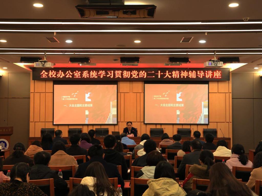 3月2日上午,学校在图书馆一会议室举办全校办公系统学习贯彻党的二十大精神辅导讲座。学校党委书记李志雄作宣讲报告。报告会由学校党委常委、副校长张波主持。相关职能部门负责人、全校办公室系统工作人员参加辅导讲座。