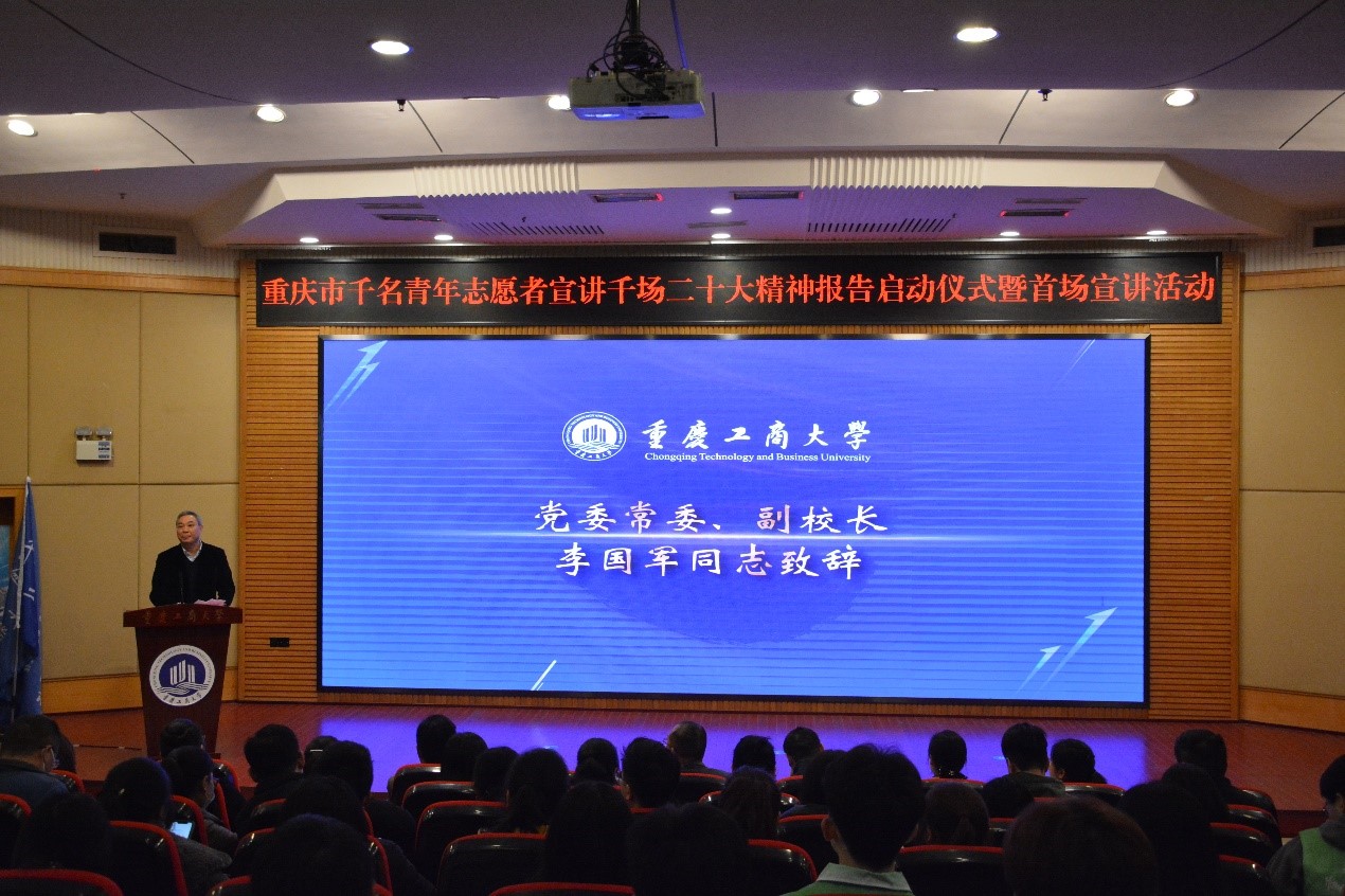 3月3日,由团市委、365英国上市官网、市青年志愿者协会主办,市志愿服务工作指导中心、校团委承办的“学习二十大、永远跟党走、奋进新征程”重庆市千名青年志愿者宣讲千场二十大精神报告会启动仪式暨首场宣讲活动在365官网南岸校区顺利举行。团市委副书记曾凯,365官网党委常委、副校长李国军,市志愿服务工作指导中心党支部书记、主任龙江,365官网党委学生工作部部长申卫东,市志愿服务工作指导中心党支部副书记贺伟,党委组织部副部长魏婉怡,校团委副书记胡婧婷出席本次活动。