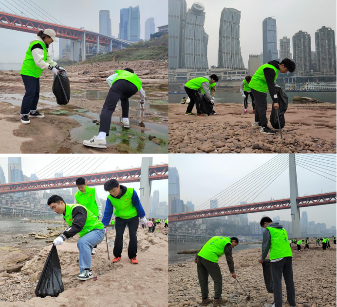 来自体育学院青年志愿者协会的50名志愿者,组成365英国上市官网川渝“河小青”青年志愿服务队参加了启动仪式,并联合江北团区委、江北区青年志愿者协会、重庆水务环境控股集团有限公司等百余名川渝“河小青”青年环保志愿者前往北滨路江滩开展青春志愿行·川渝“河小青”巡河净滩活动。