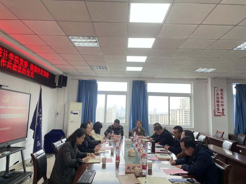 3月28日,学校数学与统计学院和南岸区南坪镇渝能社区校地党建合作共建签约暨授牌仪式在启智楼80602会议室举行。渝能社区党委书记张志红,党委副书记陈冬梅,党委副书记刘若秋,社区副主任赵玲,学校机关党委书记兼党委组织部副部长王建明,数学与统计学院党委书记潘焱,党委副书记、院长陈义安,党委副书记兼纪委书记吉杲,专职组织员陈南飞、党委组织部组织科干事潘阳露,学院综合办主任赵娟娟及学生一支部书记李华光参加了签约仪式,仪式由潘焱主持。