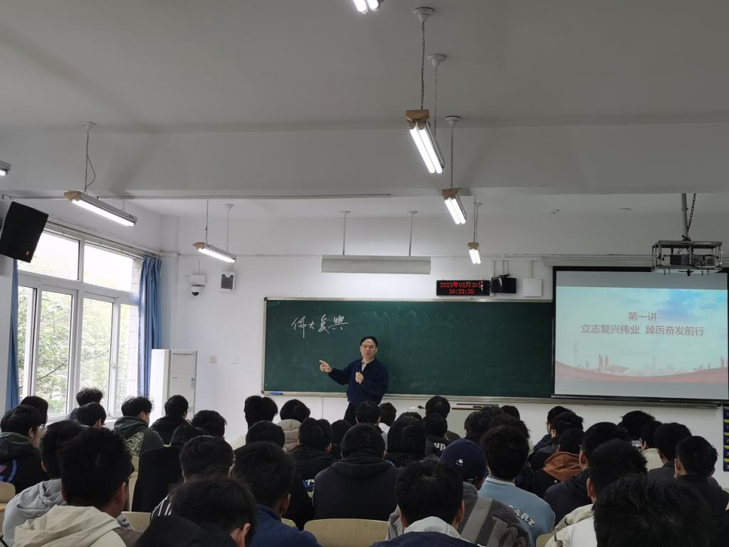 3月30日和31日上午,学校党委书记李志雄在7210和90224教室,以“立志复兴伟业、踔厉奋发前行”为主题,为2021级机械电子工程一、二班学生和2020级广告学一、二班的同学们,讲授了一堂生动的形势与政策课。