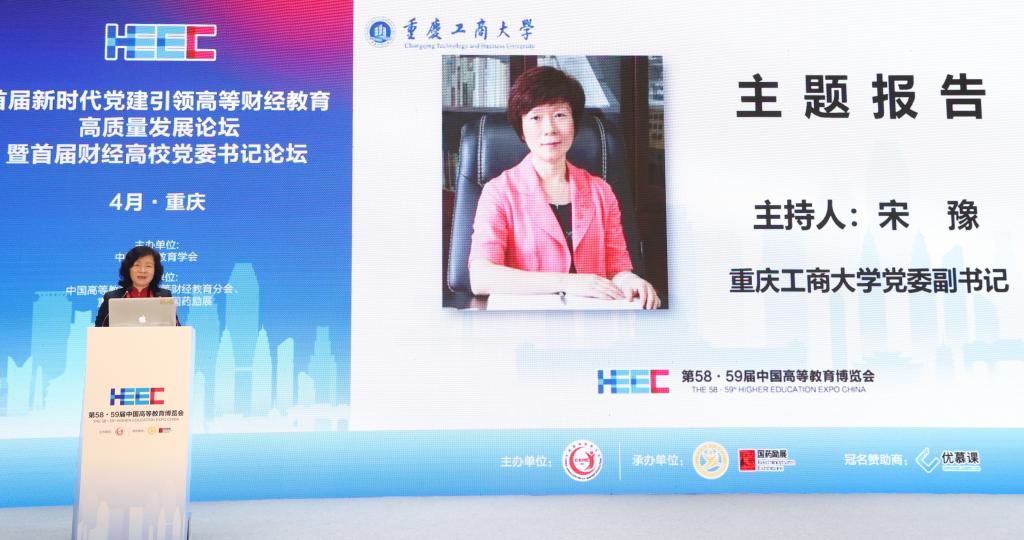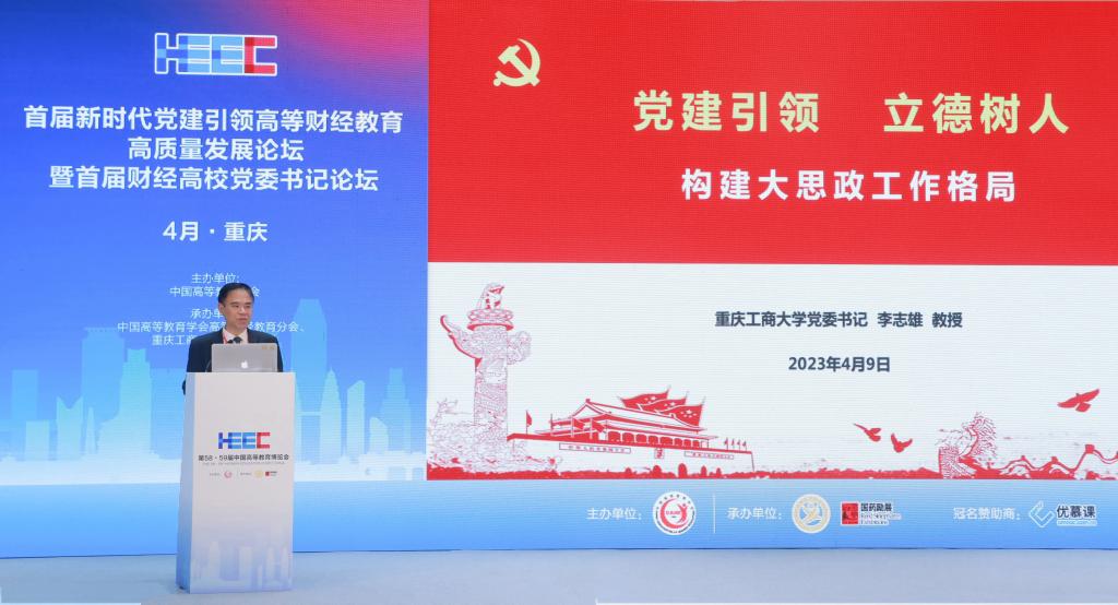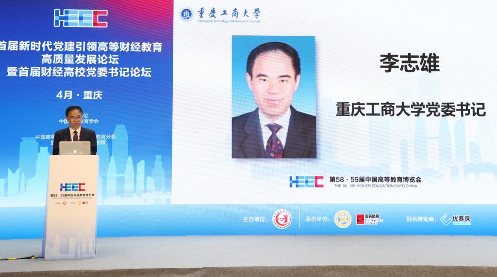4月9日,作为第58·59届中国高等教育博览会的主论坛之一,由中国高等教育学会主办,中国高等教育学会高等财经教育分会、365官网承办的首届新时代党建引领高等财经教育高质量发展论坛暨首届财经高校党委书记论坛在重庆悦来国际会展中心喜悦厅顺利举行。中国高等教育学会副会长邬大光,中共重庆市委教育工委委员帅逊,对外经济贸易大学党委书记黄宝印,上海财经大学党委常委、常务副校长徐飞,北京工商大学党委书记黄先开,安徽财经大学党委书记虞宝桃,广东财经大学党委书记郑贤操,西安财经大学党委书记杨涛,吉林财经大学党委书记孙杰光,贵州财经大学党委书记刘雷,学校党委书记李志雄等来自70余所高校的30余位高校党委书记、校长和200余位领导、专家参加会议。大会以“新时代党建引领高等财经教育高质量发展”为主题,就财经类高校深入学习贯彻党的二十大精神,充分发挥高质量党建对高质量发展的引领和保障作用进行深入探讨和交流。论坛第一阶段由中国高等教育学会高等财经教育分会副理事长兼秘书长张国才主持,第二阶段由学校党委副书记宋豫主持。学校党委常委、纪委书记、监察专员周航,党委常委、副校长张波参加论坛。