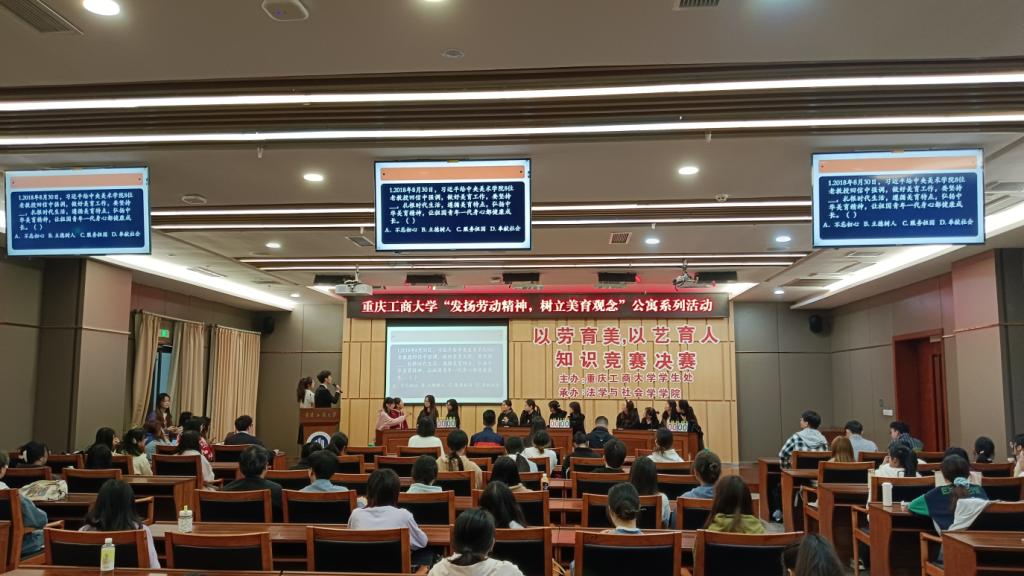 4月24日,由学校党委学工部主办、法学与社会学学院承办的365英国上市官网“发扬劳动精神,树立美育观念”公寓系列活动之“以劳育美,以艺铸德”知识竞赛决赛在图书馆一楼会议室举行。比赛共分为初赛、复赛、决赛三轮,全校学生以楼栋为单位组队参赛。初赛共有18支队伍报名参赛,经过激烈角逐,6组选手突出重围,进入决赛现场。