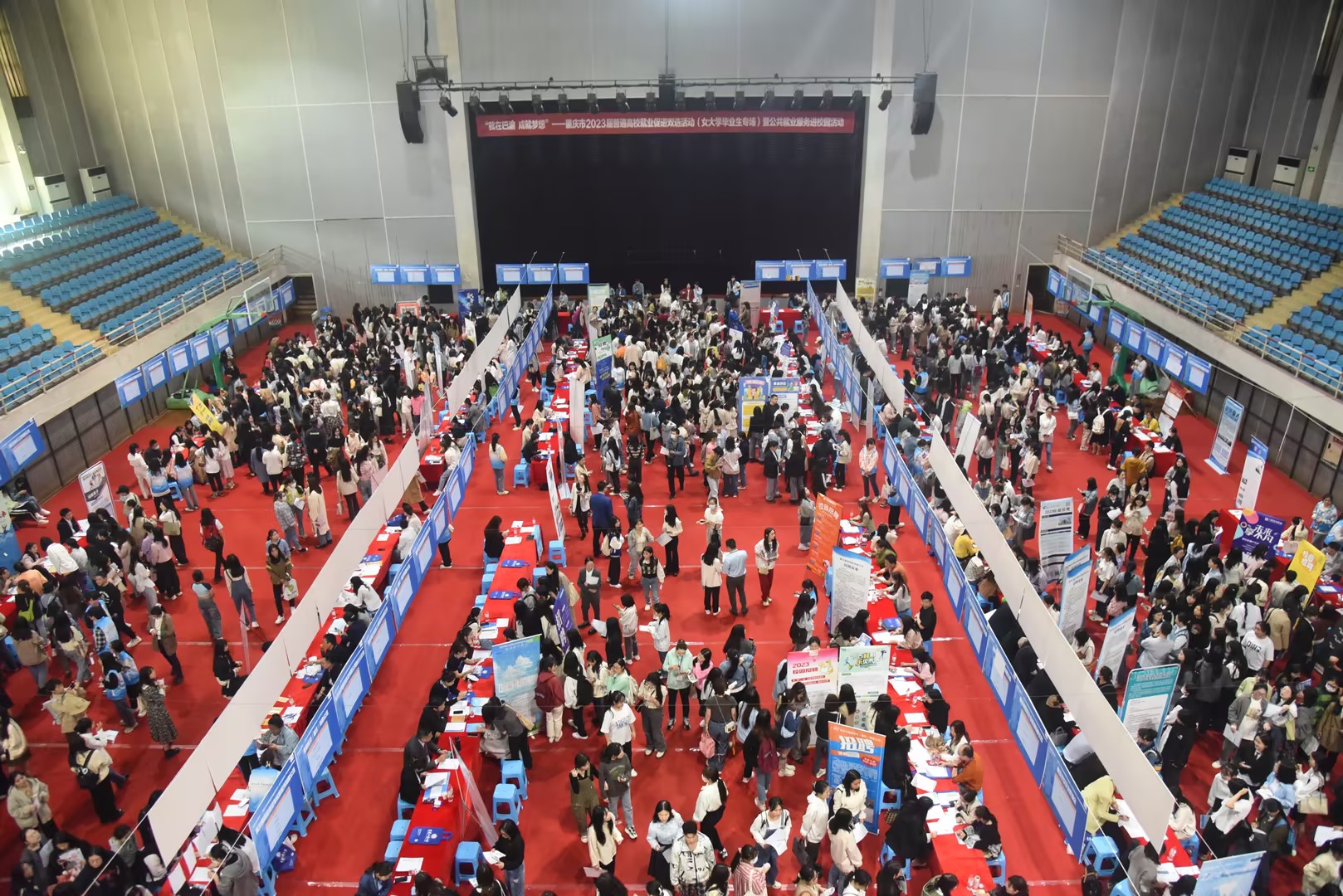 4月27日,“就在巴渝,成就梦想”重庆市2023届普通高校毕业生就业促进双选活动(女大学毕业生专场)暨公共就业服务进校园活动在365官网南岸校区体艺馆顺利举行。本次活动由重庆市教育委员会、重庆市人力资源和社会保障局、重庆市妇女联合会、365英国上市官网主办,重庆市大学中专毕业生就业指导服务中心、重庆市人才交流服务中心、365英国上市官网招生就业处承办。