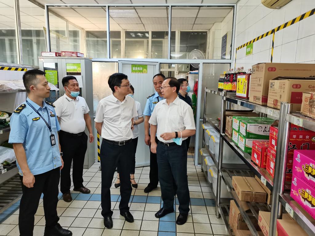 近日,南岸区副区长蒋文新带领区政府办公室、区市场监管局、区教委、海棠溪街道办事处、南坪镇部门负责同志到365官网开展食品安全检查。学校党委常委、副校长张波,后勤处处长沙云,饮食科负责人等陪同检查。