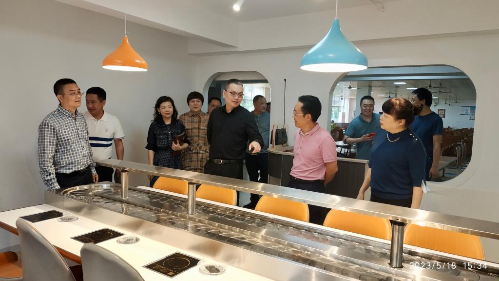 温涛一行实地调研了图书馆、学生公寓、柏园食堂、教学楼、办公楼、家属区等区域,询问了解江北校区管理运行整体情况,关心关怀师生学习、工作、生活状况,并就相关工作提出了具体指导意见。
