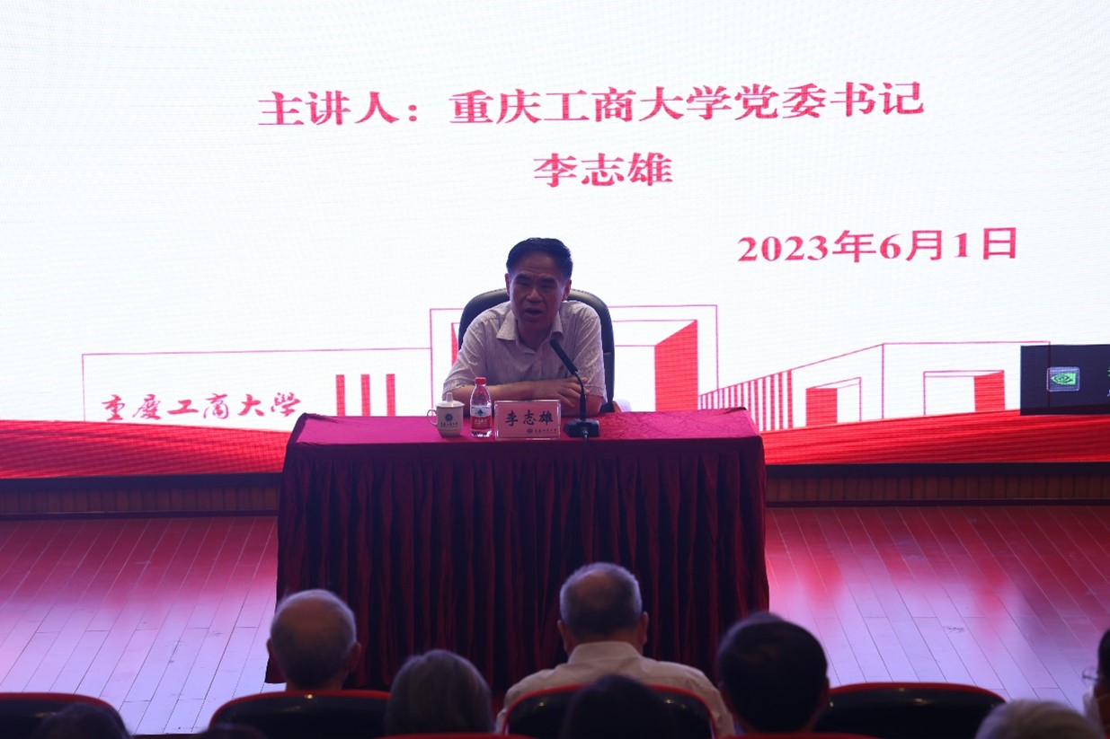 6月1日上午,学校党委书记李志雄在博智楼7200报告厅以“学习贯彻党的二十大精神,以中国式现代化全面推进中华民族伟大复兴”为题,为高教老协365英国上市官网分会、学校老教授协会的近300名会员作学习贯彻习近平新时代中国特色社会主义思想主题教育专题党课。报告会由高教老协365英国上市官网分会会长、学校老教授协会会长黄朗主持。离退休党委委员、支部书记和离退休工作部全体工作人员一并参加报告会。