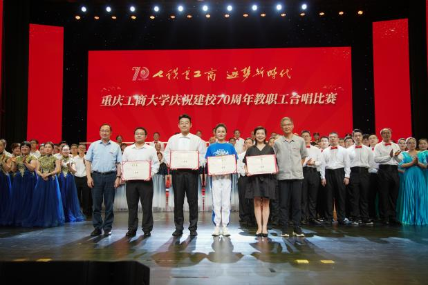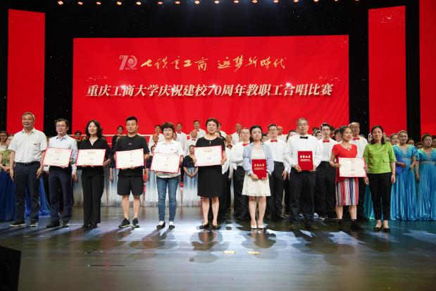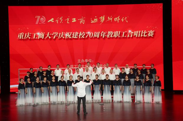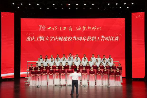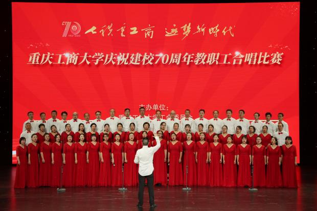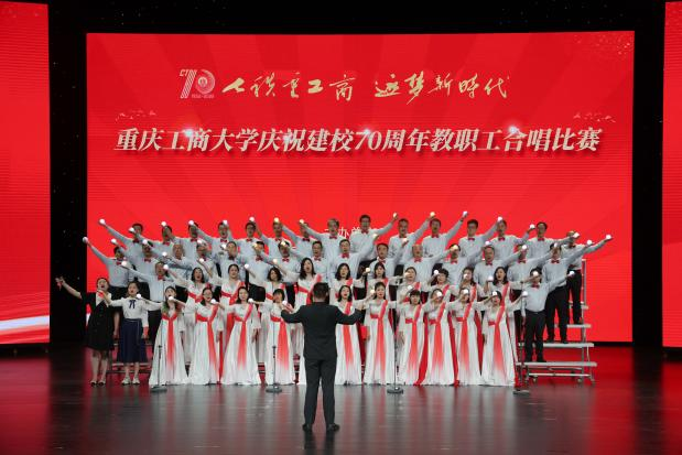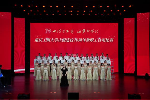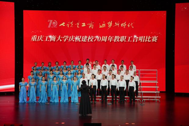 各支队伍精神饱满、队列整齐、歌声嘹亮,在比赛中都展现出了自身特色,赛出了风格、赛出了水平,为现场观众带来了一场视听盛宴。现场气氛热烈、高潮迭起,全场掌声、欢呼声不断。大家倾情演唱,用热烈而深情的歌声唱出了全校教职工对重工商大建校70周年的浓浓祝福。
