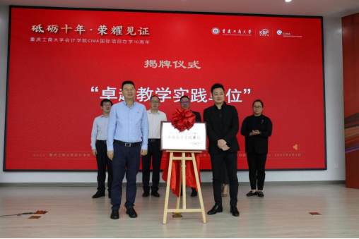 为感谢学校、学院在国际项目中做出的成绩,楷柏财经教育向会计学院授予“卓越教学实践单位”荣誉牌,会计学院本科教指委主任李定清教授与楷柏财经教育总经理李飞共同揭牌。CIMA公会向学校授予“同心聚力,共同成长”十周年纪念牌,郭敏代表学校接受了CIMA公会朱楚原先生的授牌。