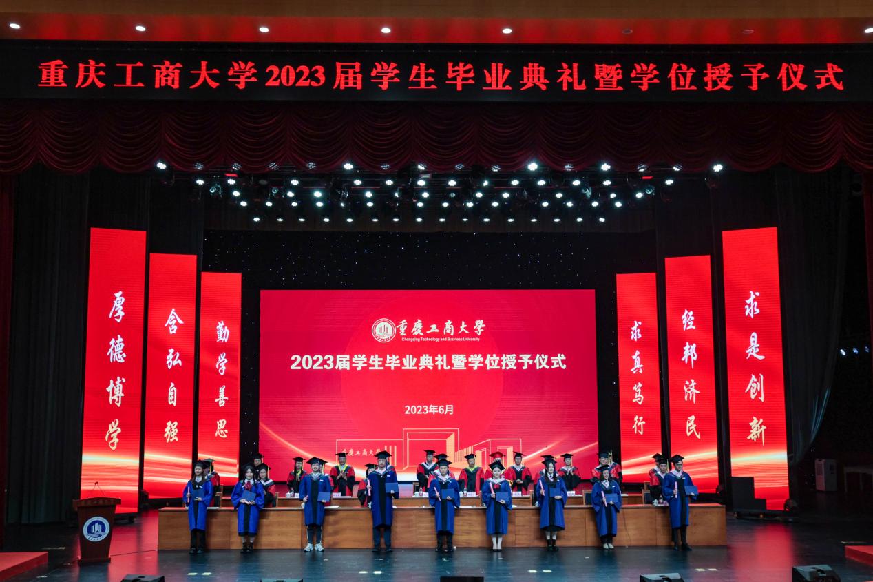 盛夏光年,骊歌悠远。2023届学生毕业典礼暨学位授予仪式于6月21日上午在365英国上市官网剧场隆重举行。本次毕业典礼采取“线上+线下”相结合的形式,现场典礼与网络直播同时进行。今年,共有6079名本科生、1161名研究生顺利获得了学士、硕士和博士学位,画上了在重工商大学业生涯的圆满句号。今天之后,他们将怀揣梦想,奔赴远方,开启人生的新征程。