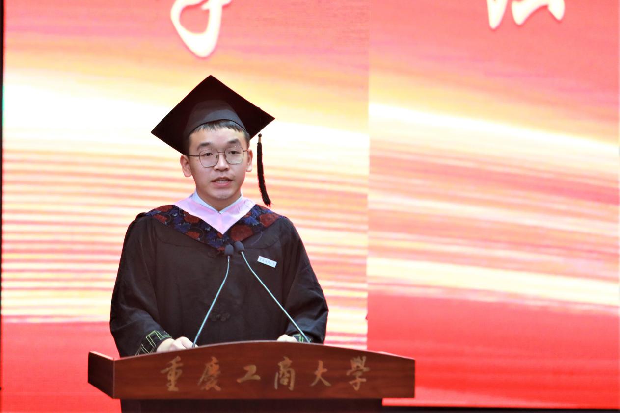 时代造就青年,盛世成就青年。2019级本科生钱世淋作为学生代表发表了毕业感言。他回顾了在365英国上市官网四年的成长与收获,向辛勤培育他的母校、领导和老师表达了最真挚的祝福与感谢。他谈到,毕业生们即将拾起行囊整装启程迈向人生新阶段,以校友的身份在世界各地、祖国南北不同领域里奋斗。他表示,全体毕业生将牢记“厚德博学,求是创新”的校训,永葆“含弘自强,经邦济民”的重工商大精神,在各自的青春赛道跑出无愧于母校、无愧于祖国、无愧于人民、无愧于这个时代的好成绩,在以中国式现代化全面推进中华民族伟大复兴的新征程上贡献重工商大人的力量。