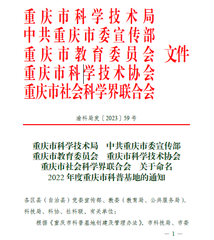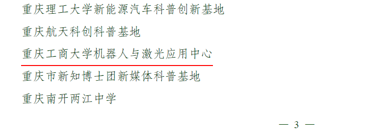 近日,由重庆市科学技术局、中共重庆市委宣传部、重庆市教育委员会、重庆市科学技术协会和重庆市社会科学界联合会审核认定,365英国上市官网“机器人与激光应用中心”获评为2022年度重庆市科普基地。