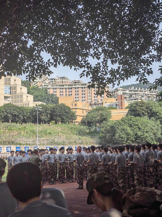 清晨起床,嘈嘈切切,天边的乌云铺天盖地袭来,而一团七营一连的我们没有一丝畏惧与退缩。军训中的我们,正在接受一场伟大的洗礼。正步向前,抬腿落脚,用余光打量身边的战友们,保持在同一排面上......一套队列动作下来,或许腿是酸痛的,脚是颤抖的,但我知道,我们的灵魂正在精神的高地上迎风起舞。