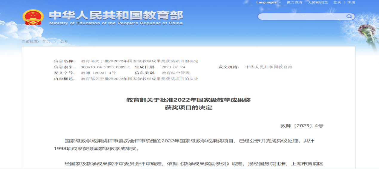 国家级教学成果奖,作为我国教育领域中唯一的一项国家级奖励,每四年评审一次,是与国家自然科学三大奖(国家自然科学奖、国家技术发明奖、国家科技进步奖)并列的国家级奖项,代表着全国教育教学工作的最高水平。