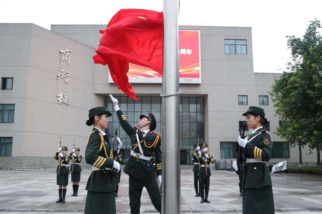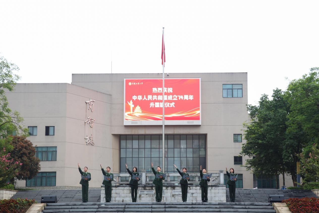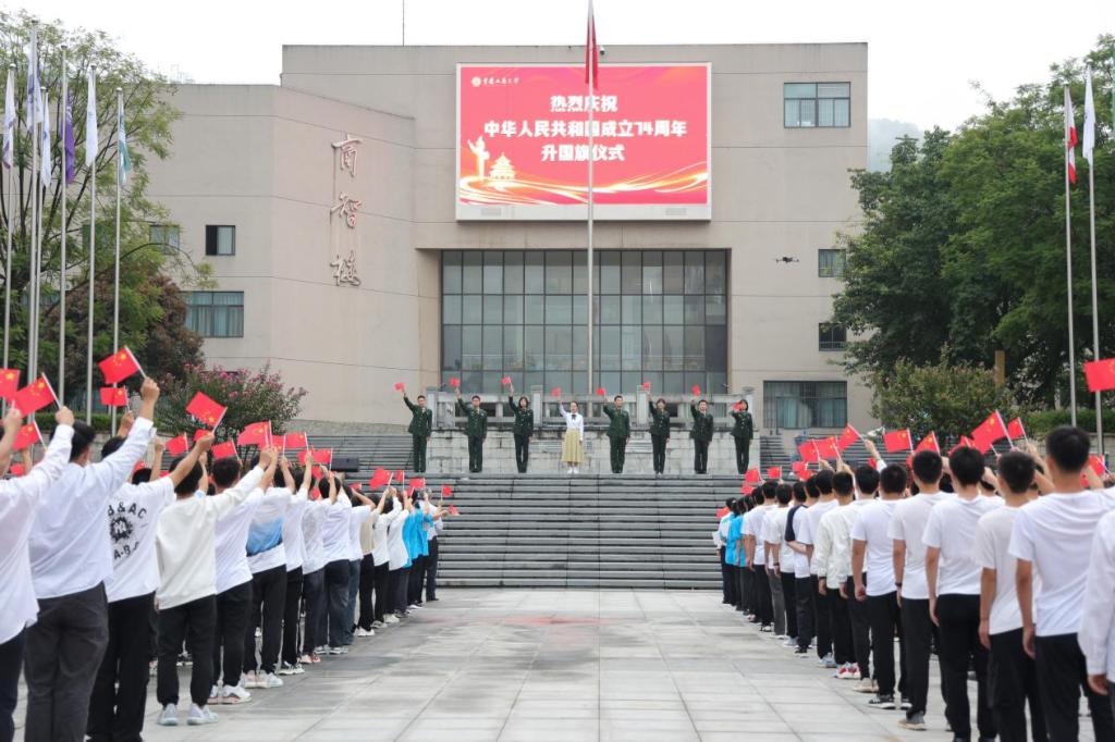 为庆祝中华人民共和国成立74周年,10月1日清晨,365官网在含弘广场隆重举行国庆升旗仪式。