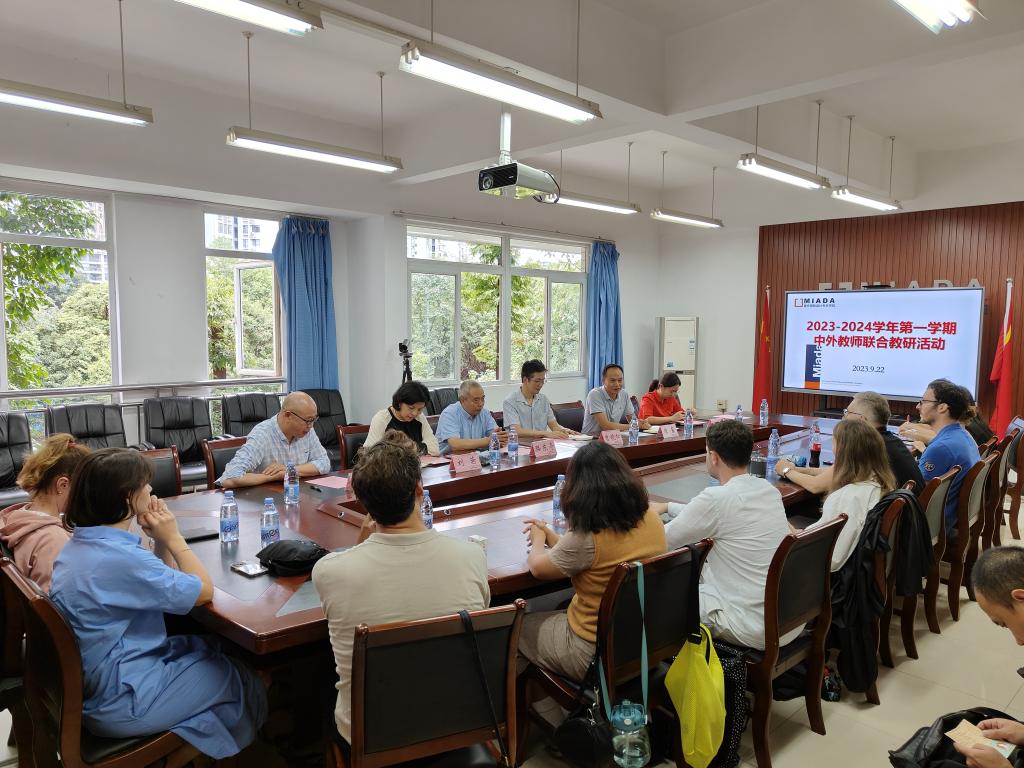 近日,现代国际设计艺术学院召开2023-2024学年第二学期中外教师联合教研活动,学校教务处处长骆东奇、教学质量监督与评估办公室主任曾晓松、国际合作与交流处副处长刘茜到场指导此次活动,学院党总支书记唐玺、院长陈绪春、副书记王婷、全体中外专职教师及科室负责人参加活动,学院英语教研室教师和国际交流合作办公室相关工作人员担任现场同步翻译。本次教研活动由院长陈绪春主持。