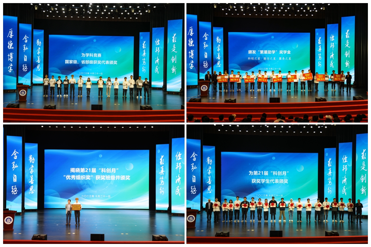 曾维伦和各职能部门负责人为获得国家级、省部级、校级学科竞赛的学生代表颁发获奖证书。竞赛获奖指导教师代表刘阳旭博士、获奖学生代表李俊垚同学分别发言。