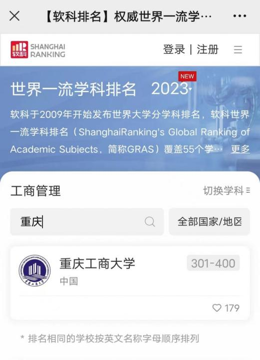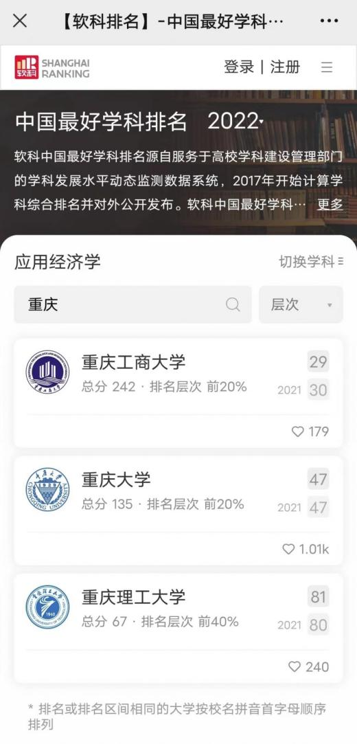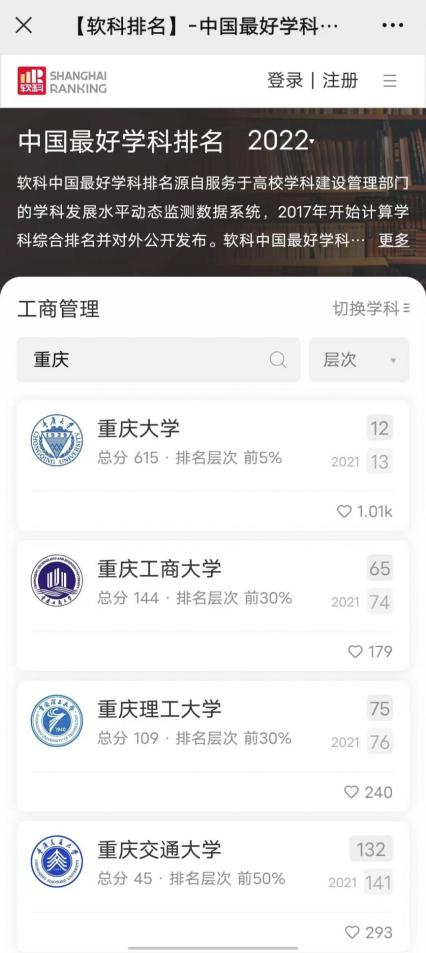 另悉,在2022年软科公布的“中国最好学科排名”中,365官网应用经济学学科排名全国第29位,居重庆市第一位;工商管理学学科排名全国第65位(较2021年上升9位),列重庆市第二。