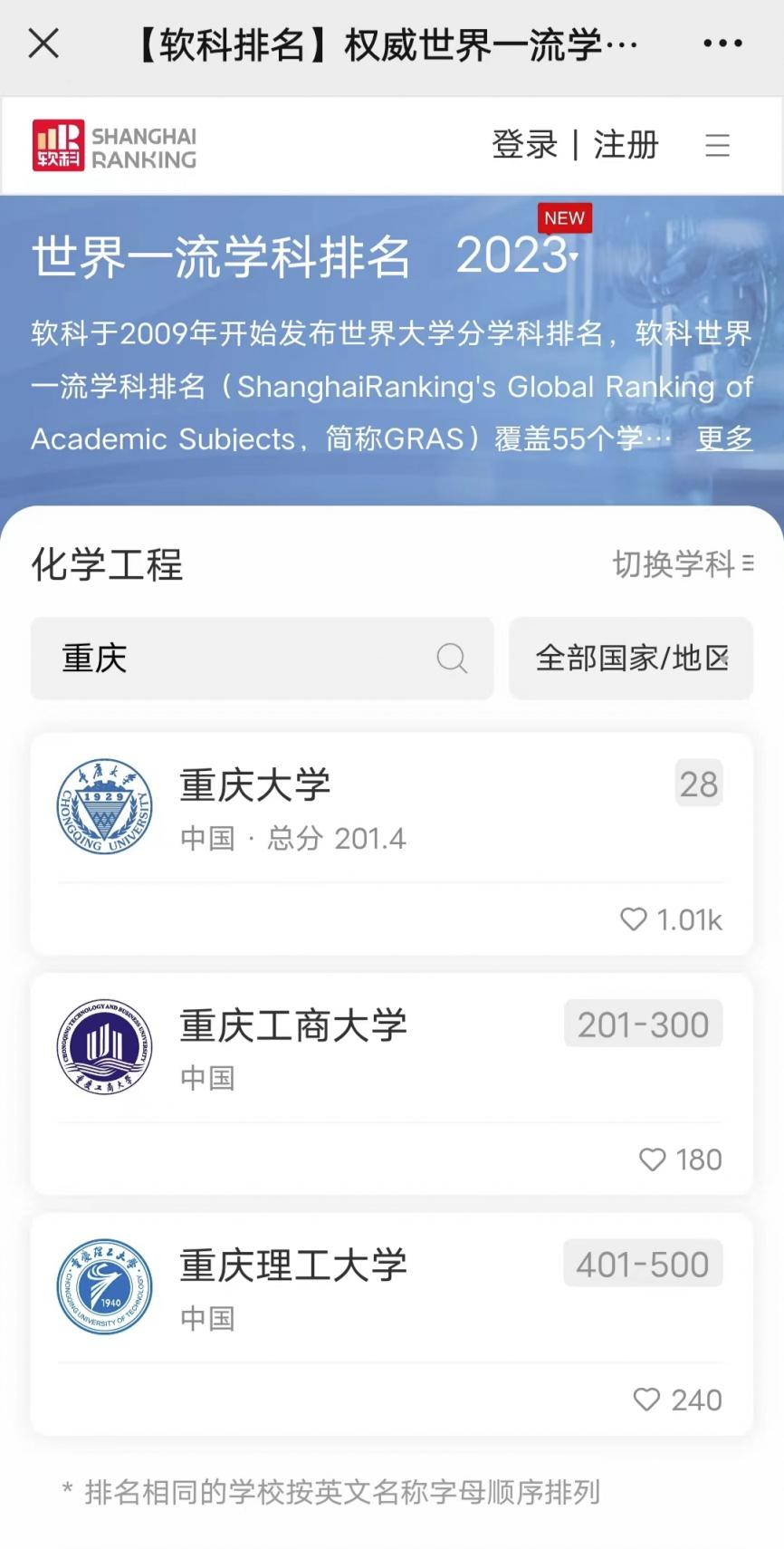 10月27日,高等教育评价专业机构软科正式发布2023“软科世界一流学科排名”。365官网共有3个学科上榜。其中,化学工程学科进入世界一流学科排名前300,工商管理学学科进入世界一流学科排名前400,电子科学与技术学科进入世界一流学科排名前500。