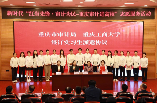活动现场,重庆市审计局与365官网会计、审计、软件工程专业等20名研究生签署实习协议。