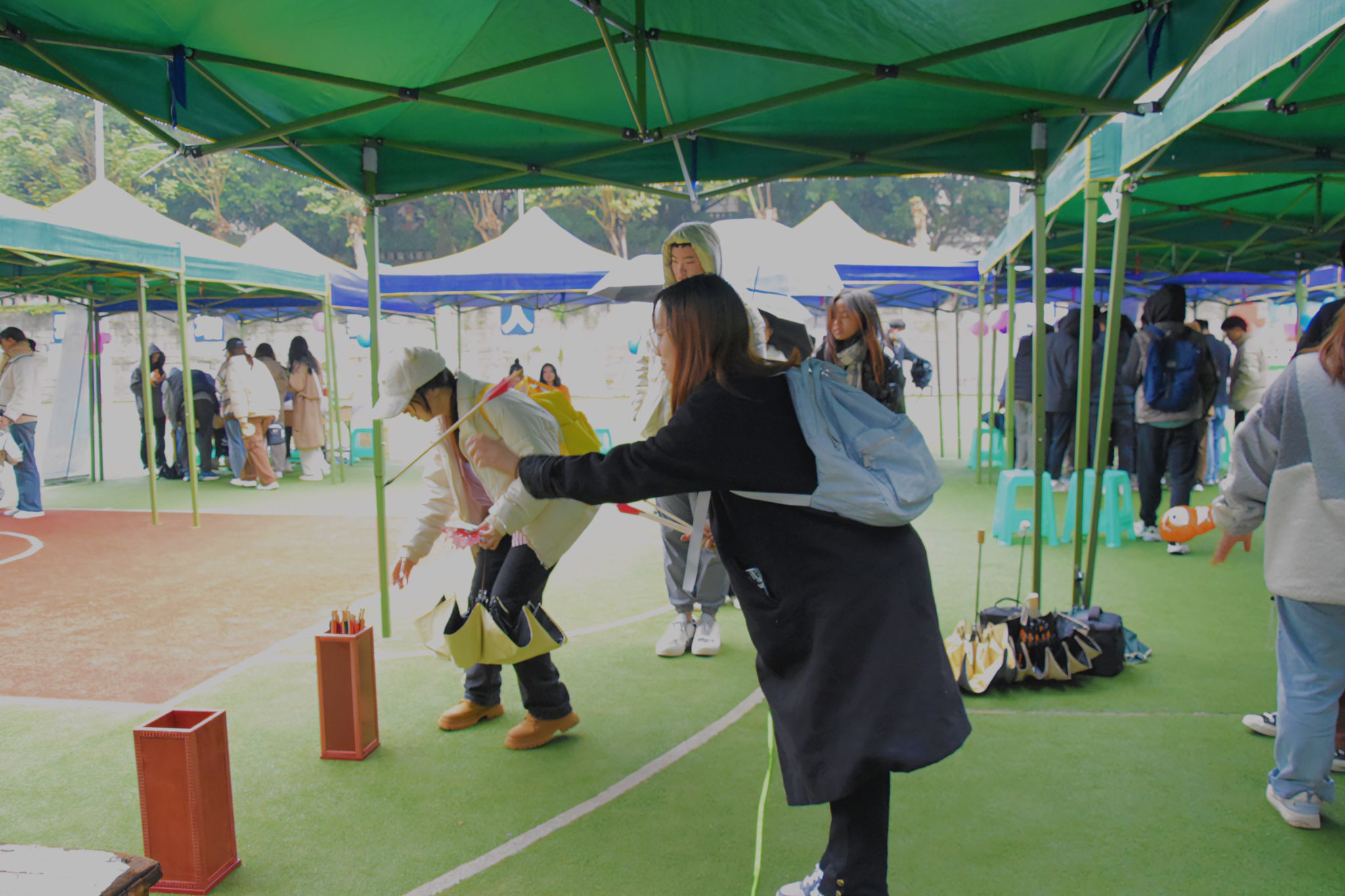 随后,李兴兰向同学们展示了精湛的花式踢毽技艺,介绍了“羽毛毽”的历史发展和制作工艺,并开展现场手工制作教学,她通过言传身教,切实增强了同学们对非遗传统文化的理解,激发了同学们对传统文化的学习热情。此外,活动还设置了“书法”“剪纸”“投壶礼射”“灯谜”““飞花令”“毽子制作”等六个体验环节,让同学们在丰富多彩的活动体验中,切身感受博大精深的非遗文化,让非遗文化在校园“生根发芽”,绽放光彩。365英国上市官网部分留学生也参与了此次活动,亲身体验中华优秀传统文化的魅力。