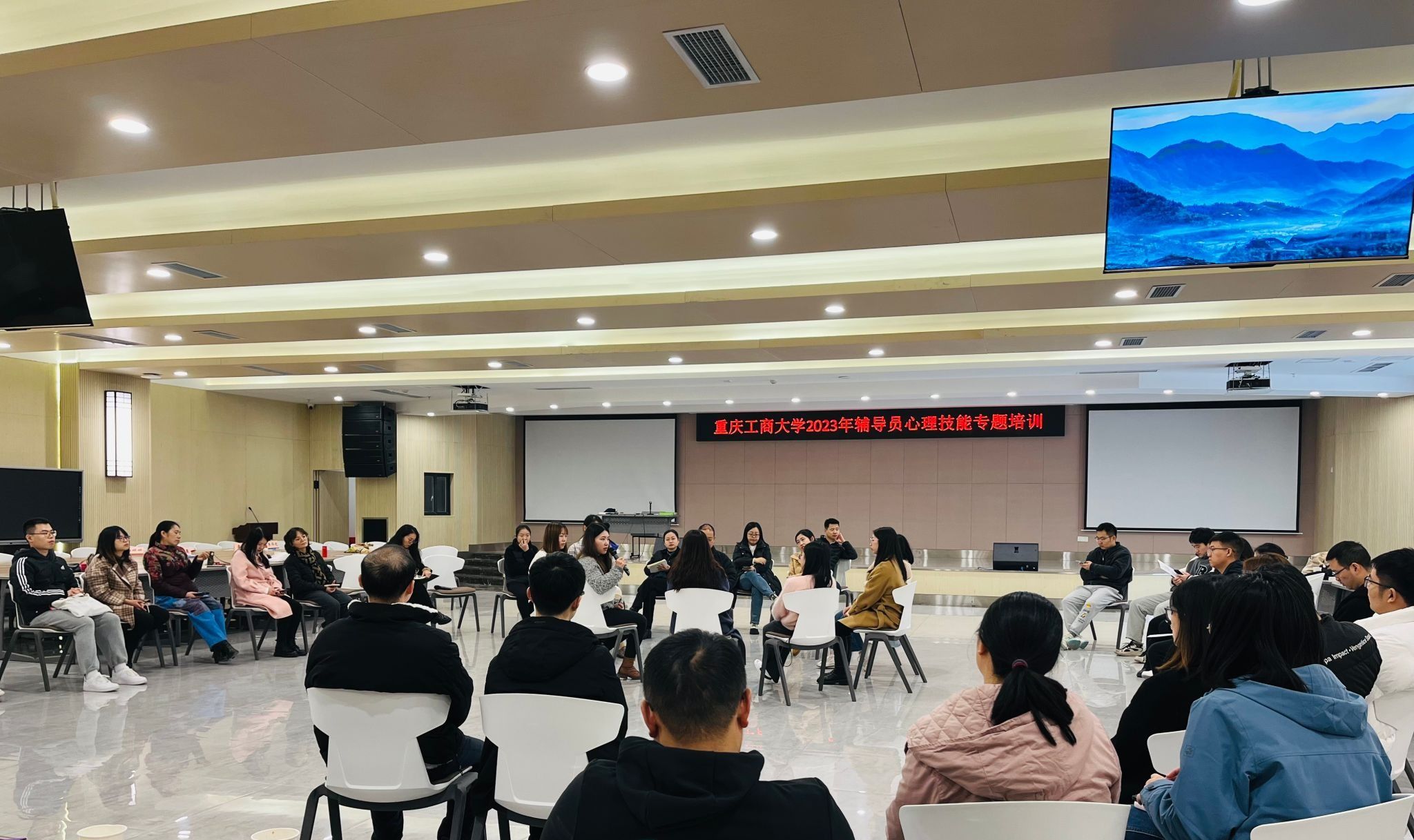 12月8-9日,由党委学工部、学生处主办的2023年辅导员心理技能专题培训班在学生事务中心报告厅进行。