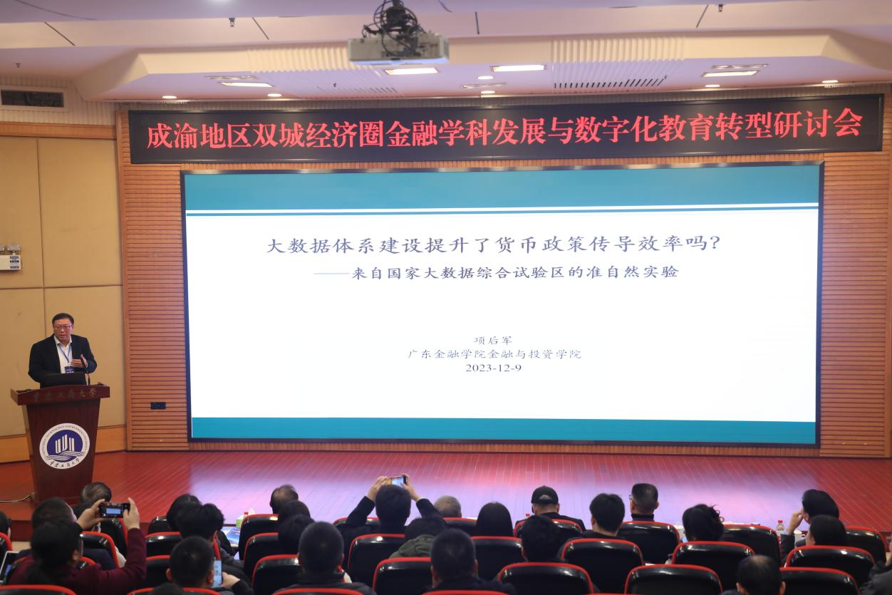广东金融学院金融与投资学院院长项后军教授以《大数据体系建设提升了货币政策传导效率吗?——来自国家大数据综合试验区的准自然实验》为题演讲。