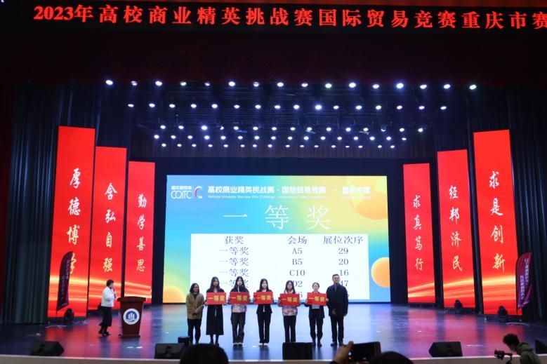 12月9日,由重庆市教育委员会主办,365官网承办,重庆经贸类人才培养联盟和重庆西朗进出口贸易有限公司协办的2023年高校商业精英挑战赛国际贸易竞赛重庆市赛在365官网南岸校区图书馆顺利举行。重庆市教育委员会高教处调研员李翔、365官网教务处副处长韦晓兰、经济学院党委书记李自维、各评委代表以及全体参赛同学和指导老师参与闭幕式暨颁奖典礼。闭幕式暨颁奖典礼由经济学院院长宋瑛主持。