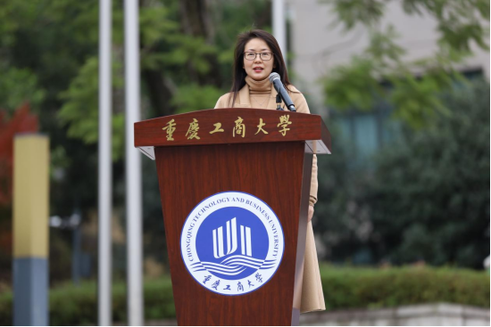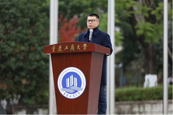 机械工程学院邓知宇同学作为学生代表身份宣读了劳动倡议书。他倡议全校师生树立“劳动最光荣”的观念。