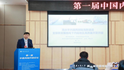 学校党委常委、副校长李敬作了题为《内陆开放的复兴与中国内陆开放高地建设战略》的主旨报告。他认为经济交易成本的优势是内陆开放复兴的基础,强调中欧班列、西部陆海新通道对内陆开放的重要意义,提出中国内陆开放高地建设战略的实现路径。