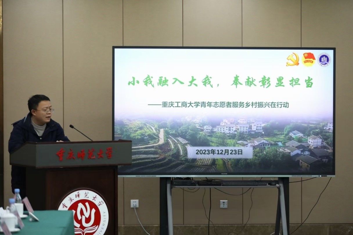 23日,“嘉年华”之乡村振兴中的青年志愿服务力量平行交流会在重庆师范大学举行。校团委书记吴佑波以《小我融入大我,奉献彰显担当——365英国上市官网青年志愿者服务乡村振兴在行动》为题做了交流发言。